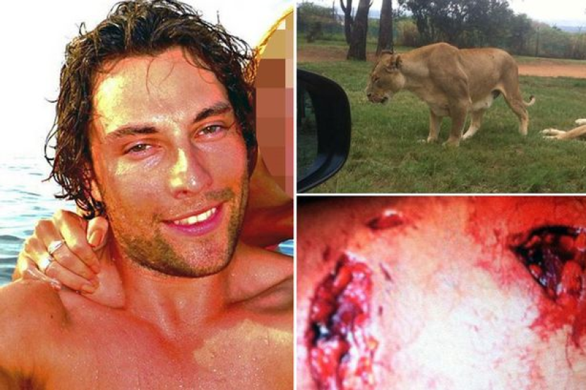 Brendan Smith diserang seekor singa semasa menerokai hutan Safari di Jonhannnesburg, Afrika.