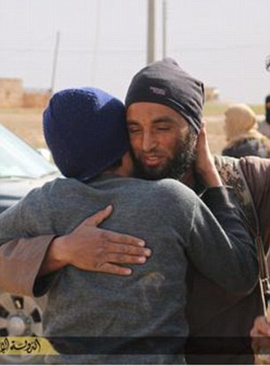 Pasangan gay tersebut kemudian berpelukan sesama mereka serta ahli kumpulan militan sebelum hukuman dijalankan.