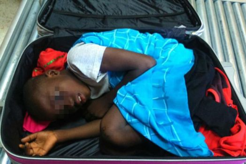 Imej budak itu dalam beg pakaian berkenaan ketika diimbas polis mengejutkan ramai pihak.