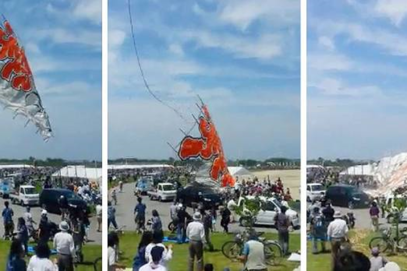 Layang-layang itu secara tiba-tiba jatuh terhempas ketika ia dilayangkan pada ketinggian kira-kira 200 meter, kata pegawai bandar Higashiomi.