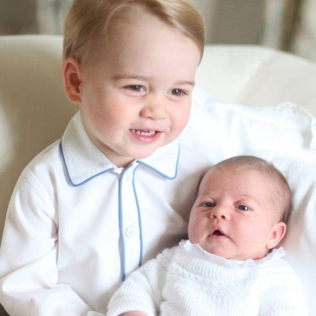 Empat gambar yang diambil oleh ibu mereka, Duchess of Cambridge, Kate Middleton, menunjukkan Putera Geogre yang berusia 21 bulan duduk di atas sebuah sofa sambil memegang adiknya itu.