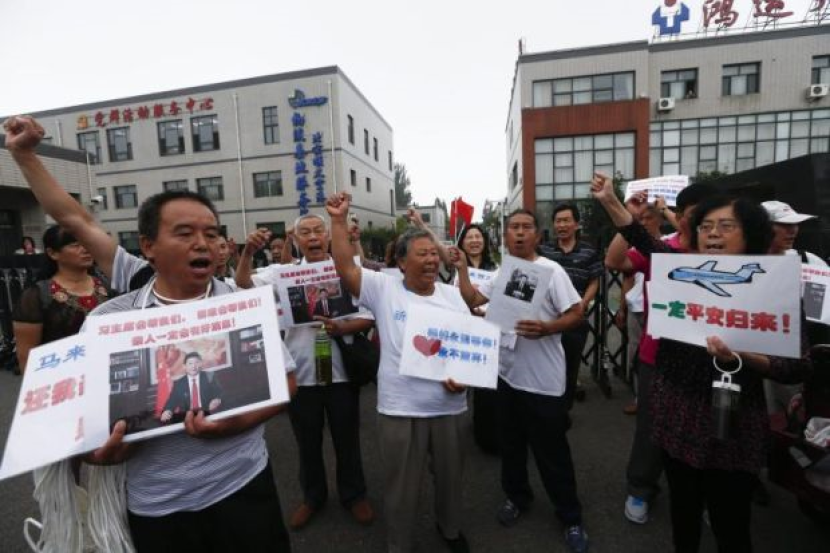 Kira-kira 30 waris mangsa berkumpul di luar bangunan pejabat MAS berhampiran lapangan terbang utama Beijing dengan harapan untuk menemui pegawai dari Malaysia, namun tiada seorang pun yang hadir.