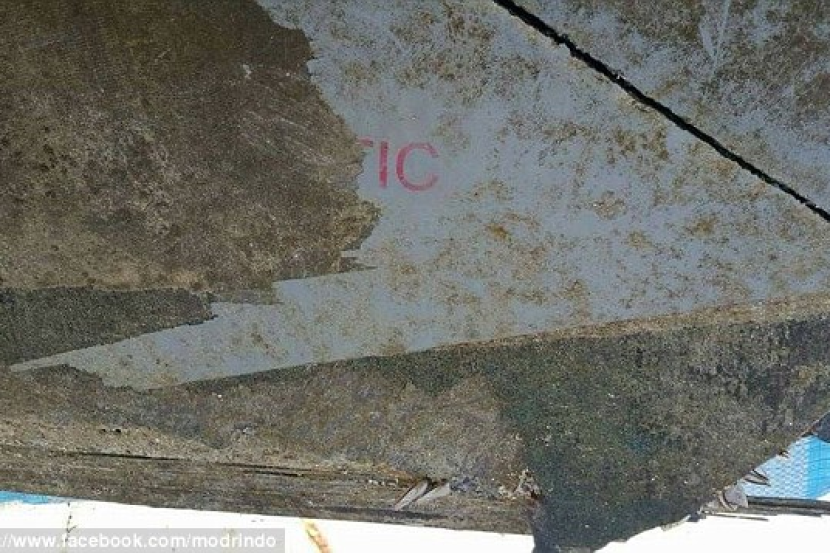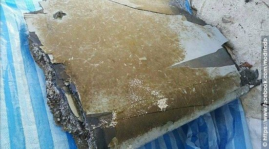 Gambar salah satu kepingan besar logam yang ditemui berhampiran resort Banyan Tree di pulau Vabbinfaru dikatakan membawa persamaan yang ketara dengan bahagian sayap dipenuhi cengkerang yang ditemui terdampar di pulau Reunion Julai lalu dengan jarak 2,000 batu dari Maldives.