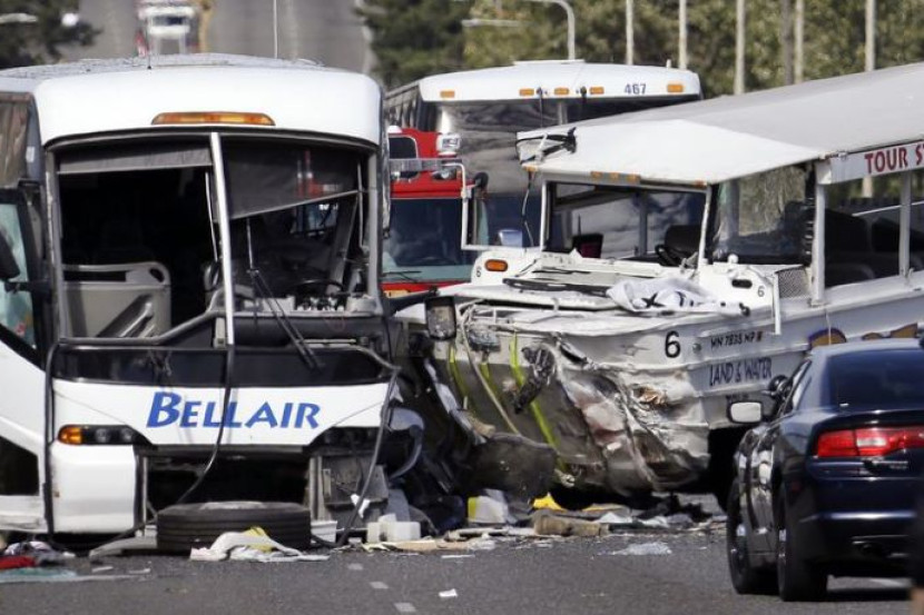 Kejadian melibatkan sebuah bas persiaran amfibia dan bas sewa khas yang membawa pelajar kolej luar negara bertembung di jambatan Seattle juga menyebabkan 44 orang dikejarkan ke hospital.