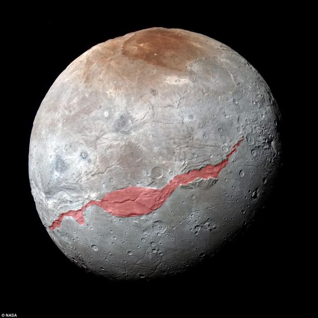 "Amat jelas sekali ia menunjukkan pada masa lalu, kerak pada permukaan Charon pernah merobek dan terbuka luas kerana pergerakan yang kuat," kata pakar astrologi, John Spencer, dari Southwest Research Institute di Boulder, Colorado, Amerika Syarikat.