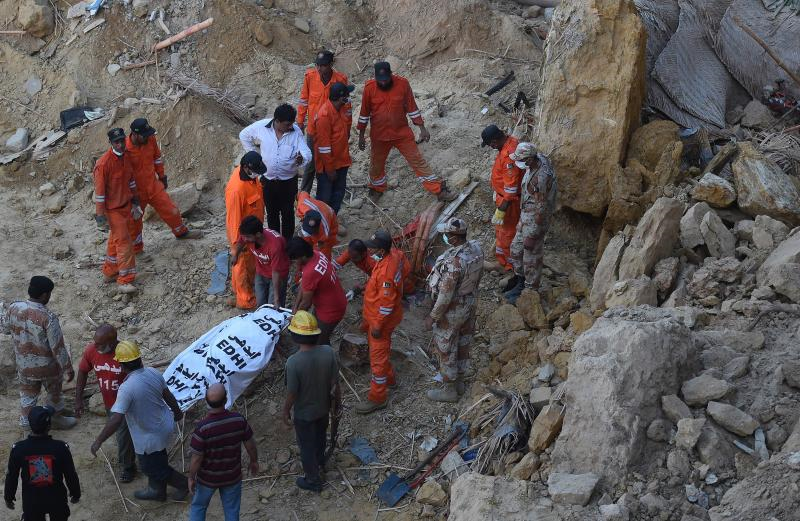 Sementara itu, pegawai kanan polis, Javed Jaskani berkata, kejadian sekitar pukul 2 pagi (waktu tempatan) itu berlaku apabila batu dan tanah runtuh di kawasan setinggan dan menghempap tiga pondok di kawasan Gulstane Jauhar.