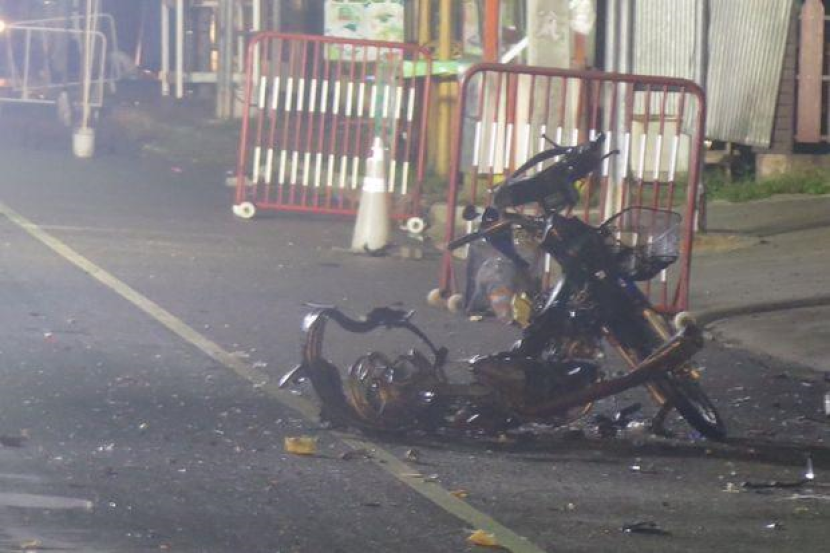 Letupan itu melibatkan bom yang diletakkan pada tiang elektrik di depan dan bertentangan kedai cenderahati.