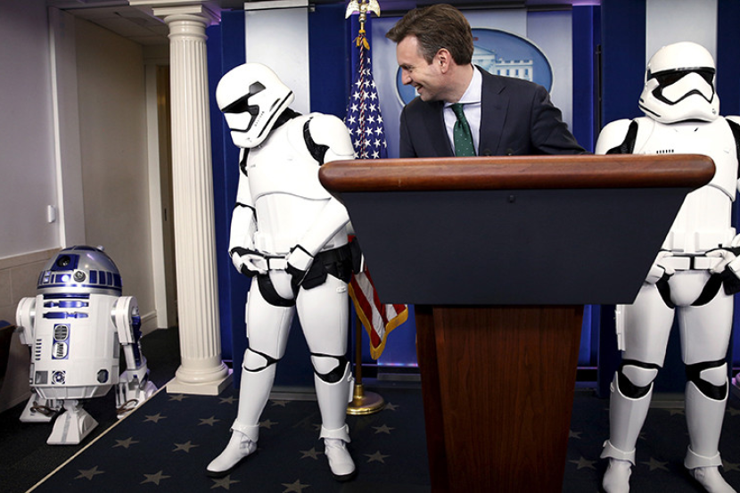 Kehadiran watak popular itu dalam episod terbaharu filem yang dinantikan ramai itu mengejutkan wartawan yang membuat liputan sidang media yang dikendalikan Setiausaha Akhbar Rumah Putih, Josh Earnest.