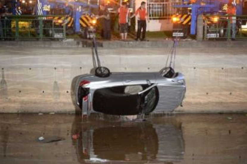 Kereta itu bergerak merempuh kawasan semak bersebelahan laluan air itu sebelum terhumban.