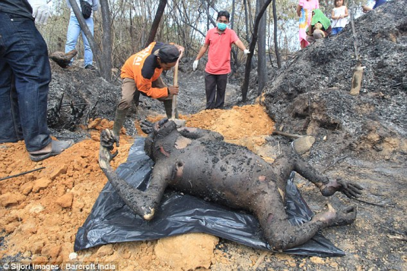 Sebaik selesai menjalankan siasatan kematian Orang Utan itu, sepasukan pegawai dari Taman Nasional Kutai dan polis Bontang menanam ketiga-tiga mamalia berkenaan yang maut akibat kejadian pada 20 Februari lalu itu.