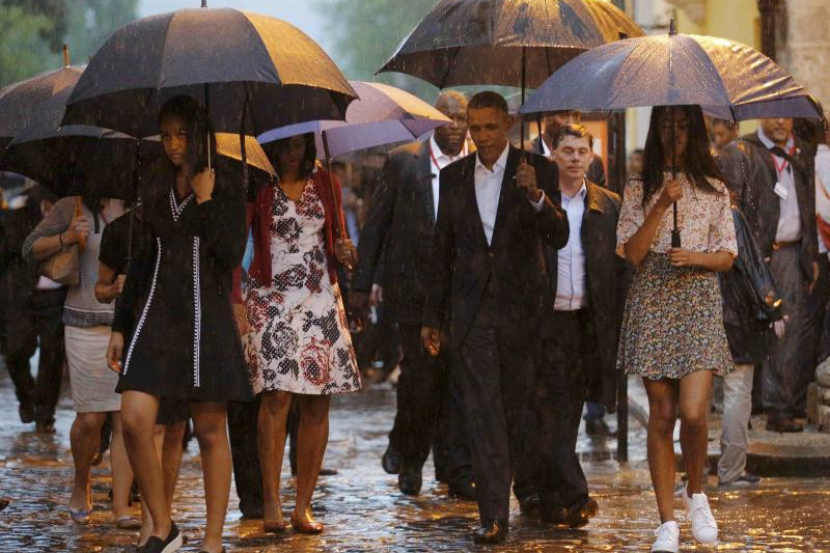 HAVANA: Hujan lebat, laluan yang lenggang dan gerombolan anggota polis - itulah gambaran ringkas sambutan yang diterima Barack Obama pada Ahad apabila menjadi presiden Amerika Syarikat pertama melawat ibu negara Cuba dalam tempoh 88 tahun itu.