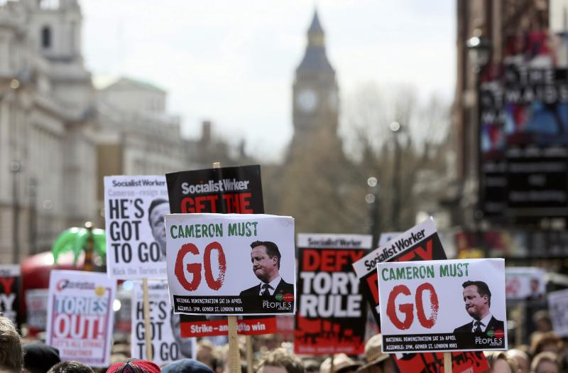 LONDON: Pendedahan isu cukai melibatkan Perdana Menteri Britain mencetus kemarahan rakyat apabila ribuan berarak ke Downing Street mendesak David Cameron meletak jawatan.