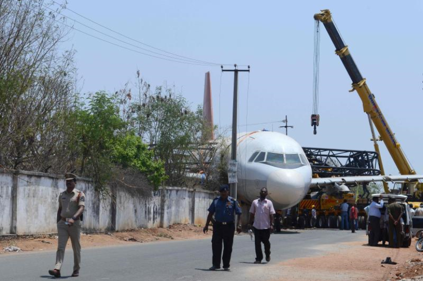 Portal Mirror melaporkan pesawat Airbus A320 itu sedang dibawa keluar dari Lapangan Terbang Begumpet di Hyderabad menggunakan kren berkenaan ketika kejadian berlaku.