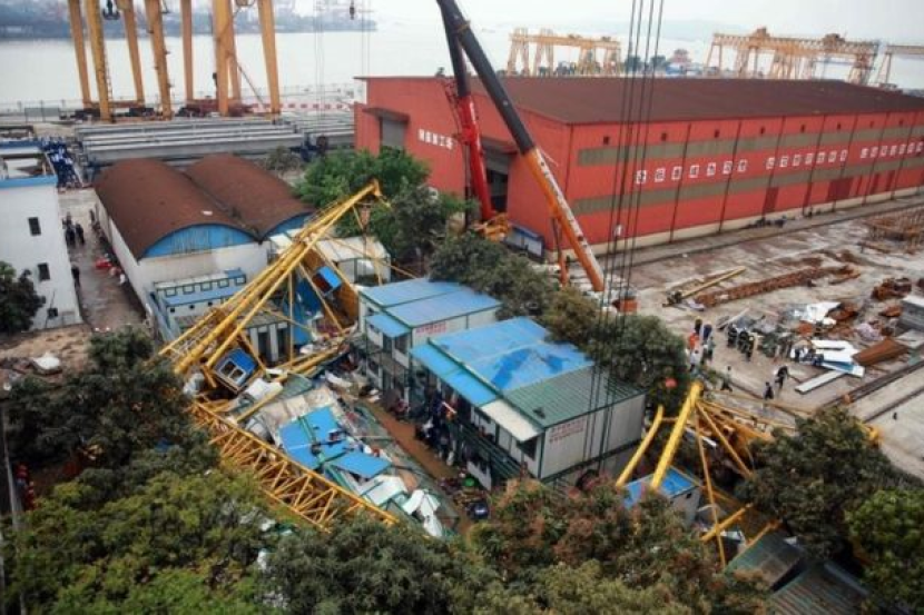 Kren seberat 80 tan itu menghempap bangunan sementara yang diperbuat daripada dua kontena di lokasi kejadian pada pagi Rabu.