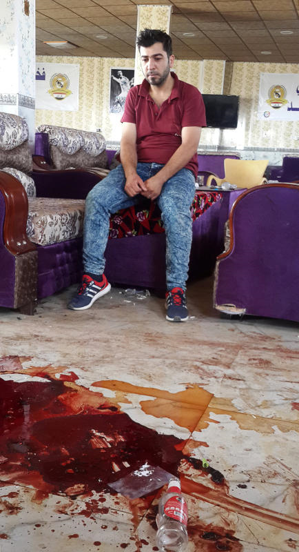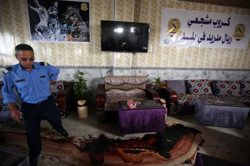 Kejadian itu menyebabkan poster logo, pemain dan jurulatih kelab itu, Zinedine Zidane yang tergantung pada dinding kafe itu disimbahi darah.“Anggota kumpulan IS masuk ke kafe dengan bersenjatakan senapang AK-47 dan bom tangan lalu menembak secara rambang ke arah semua orang di dalamnya,” kata Timbalan Gabenor wilayah Salaheddin, Ammar Hekmat al-Baldawi.