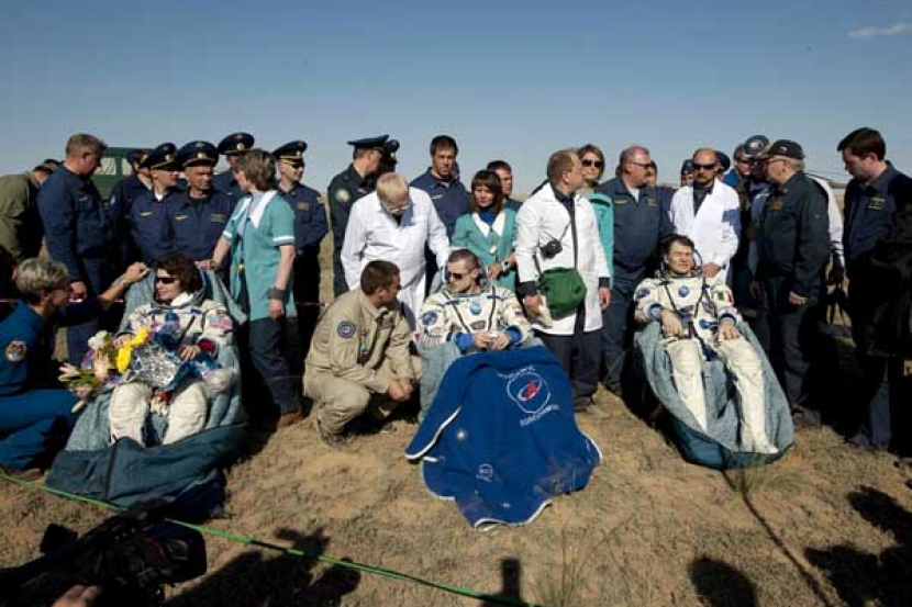 Video pendaratan mereka di bandar Zhezkazgan juga menunjukkan pasukan perubatan membantu ketiga-tiga angkasawan berkenaan.