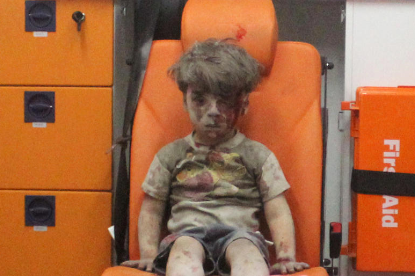 Omran Daqneesh terpaku dan bingung dengan nasib yang menimpa keluarganya. Foto Reuters.