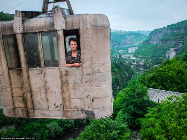 Seorang jurugambar, Sakellaraki berkunjung ke Chiatura bagi mengambil peluang keemasan untuk mengambil foto rangkaian kereta kabel yang beroperasi di laluan sepanjang kira-kira enam kilometer.