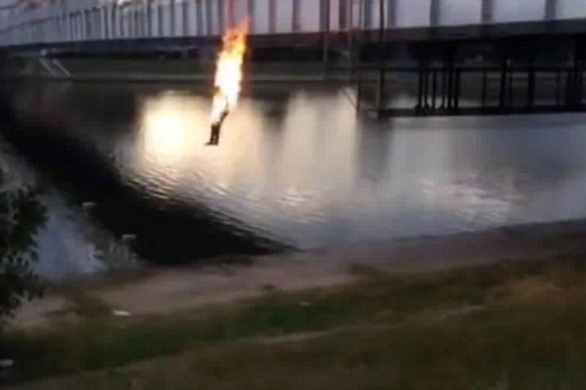 Berita asal: http://www.dailymail.co.uk/news/article-3787323/Teenagers-set-FIRE-jump-river-20ft-high-bridge-Russia-wanted-likes-social-media.html