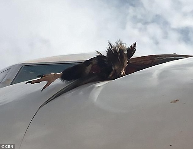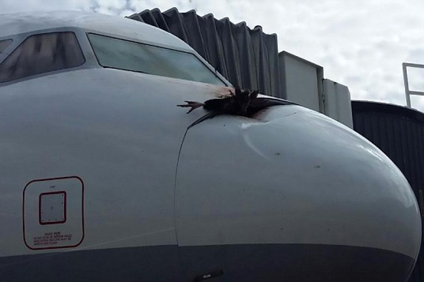 Imej yang menunjukkan kesan pelanggaran itu turut dimuat naik dalam Internet dengan bangkai burung malang tersebut masih melekat pada muncung pesawat terbabit.