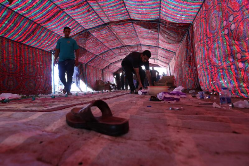 Khemah itu yang didirikan di sebuah pasar di al-Shaab juga menjadi tempat untuk mengadakan majlis memperingati seorang penduduk tempatan, kata pihak berkuasa.