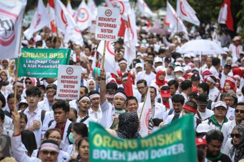 Demonstrasi anjuran Ikatan Doktor Indonesia (IDI) itu berlangsung kira-kira empat jam bermula pukul 8 pagi di hadapan Istana Presiden di sini.