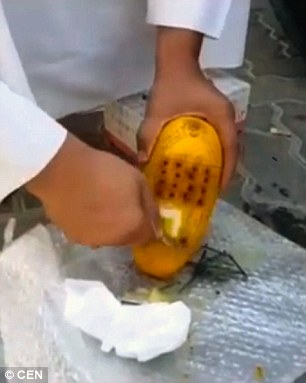 Imam yang tidak dinamakan itu kemudiannya membuang pin dan paku pada tembikai tersebut sebelum membelah buah berkenaan.
