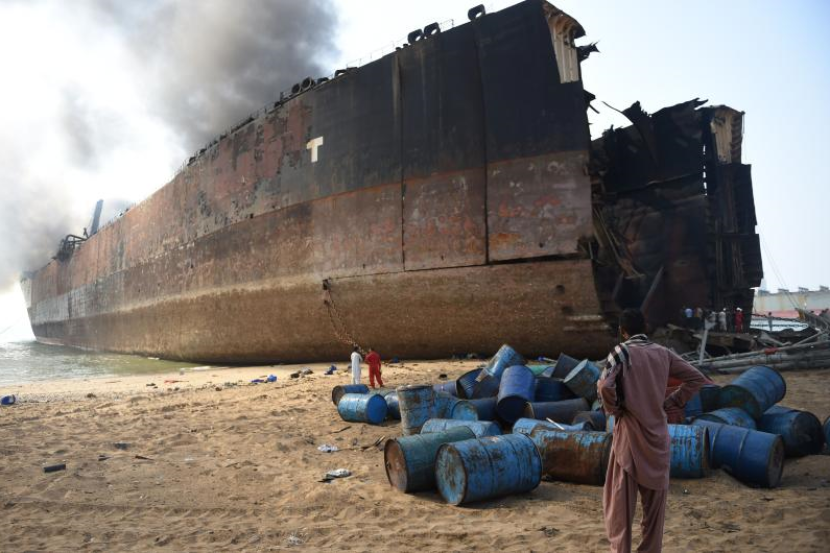 GADANI: Angka kematian akibat letupan silinder gas dalam kapal tangki di limbungan di selatan Pakistan meningkat kepada 18 sejak kejadian pada Selasa itu.