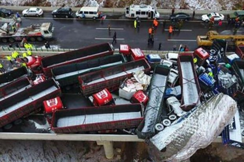 Sebanyak 56 buah kereta dan trak terlibat dalam perlanggaran besar-besaran ini, selepas salji yang turun membawa kepada penglihatan terhad dan keadaan jalan yang berais di lebuh raya Jingkun dekat Yangquan, wilayah Shanxi, China National Radio melaporkan.
