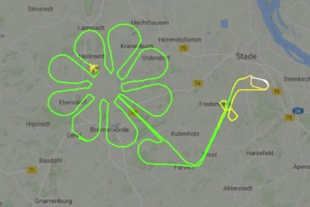 Malah terdapat pesawat lain dikesan 'melukis' gambar bunga dalam laluan penerbangannya.