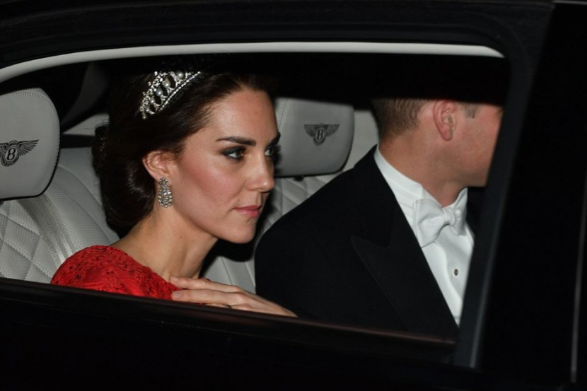 Memakai tiara yang mempunyai sejarah tersendiri, Kate kelihatan anggun memakai busana merah.