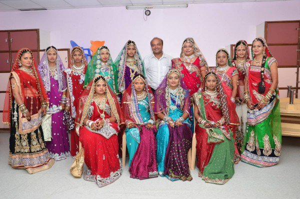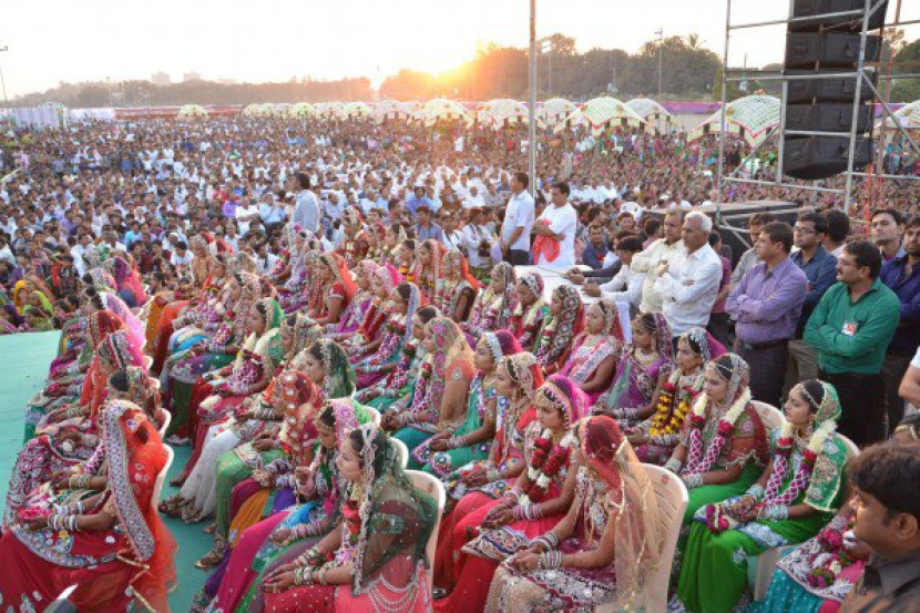 Ratusan pengantin wanita itu memakai busana tradisional berwarna-warni dan perhiasan barangan kemas semasa majlis perkahwinan mereka yang dihadiri oleh ribuan tetamu di bandar Surat, iaitu sebuah pusat utama bagi industri pengilapan berlian.