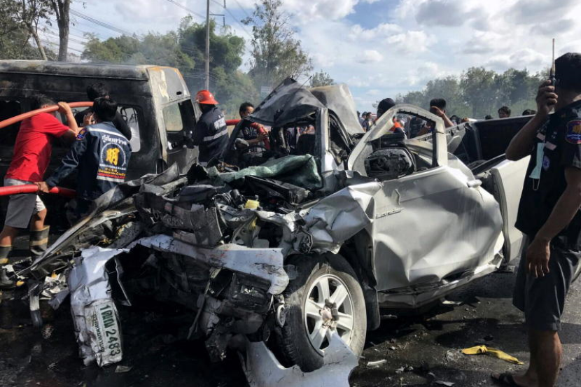Menurut ketua polis Daerah Banbueng Kol Dussadee Kunchon Na Ayutthaya, kemalangan yang mengakibatkan kedua-dua kenderaan itu terbakar, berlaku pada 2 petang (waktu tempatan).