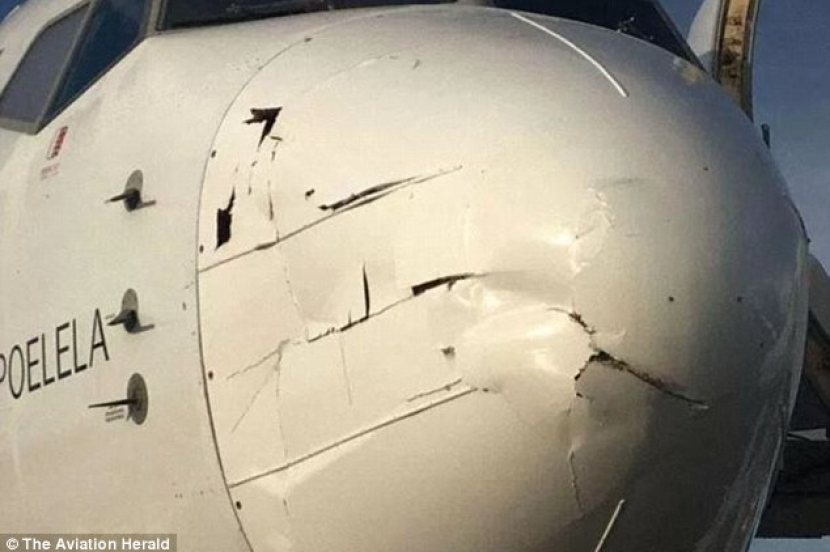 BAHAGIAN depan sebuah pesawat mengalami kerosakan dipercayai dilanggar dron di Mozambique, Khamis lalu.