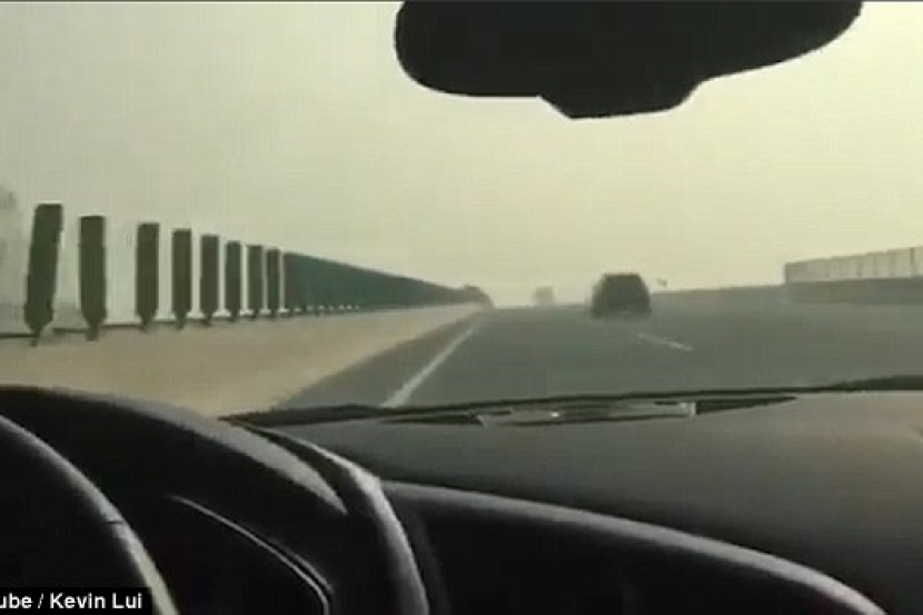 Dalam rakaman itu, jarak penglihatan di lebuh raya itu jelas sekali rendah, namun kereta tersebut tetap memotong kenderaan dalam jumlah yang banyak.