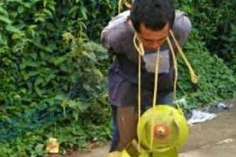 BOGOR: Seorang lelaki menerima padah apabila diikat pada tiang dan lehernya digantung dengan tiga tong gas selepas dia ditangkap cuba mencuri peralatan memasak berkenaan. Seorang saksi yang dikenali sebagai Boy berkata, kejadian itu berlaku kelmarin apabila lelaki itu berpura-pura datang ke sebuah rumah penduduk di Pondok Damai di sini. Katanya, ketika mangsa keluar sebentar, lelaki itu mengambil kesempatan masuk ke dalam rumah dan mencuri tiga tong gas memasak yang setiap satunya seberat tiga kilogram. Bagaimanapun, tindakan lelaki itu disedari jiran mangsa yang terus mengejar suspek dan menangkapnya. “Beberapa penduduk memukul lelaki itu sebelum mengikatnya pada tiang elektrik. “Seorang penduduk kemudian mengambil tong gas yang dicuri itu dan menggantung pada leher lelaki berkenaan,” katanya. Menurutnya, lelaki itu dipaksa menahan berat tong gas itu di lehernya selama hampir sejam sebelum anggota polis datang dan menahannya. Jurucakap polis, Tri Lesmana memberitahu, suspek dilepaskan dengan amaran selepas mangsa enggan membuat laporan mengenai kejadian itu.