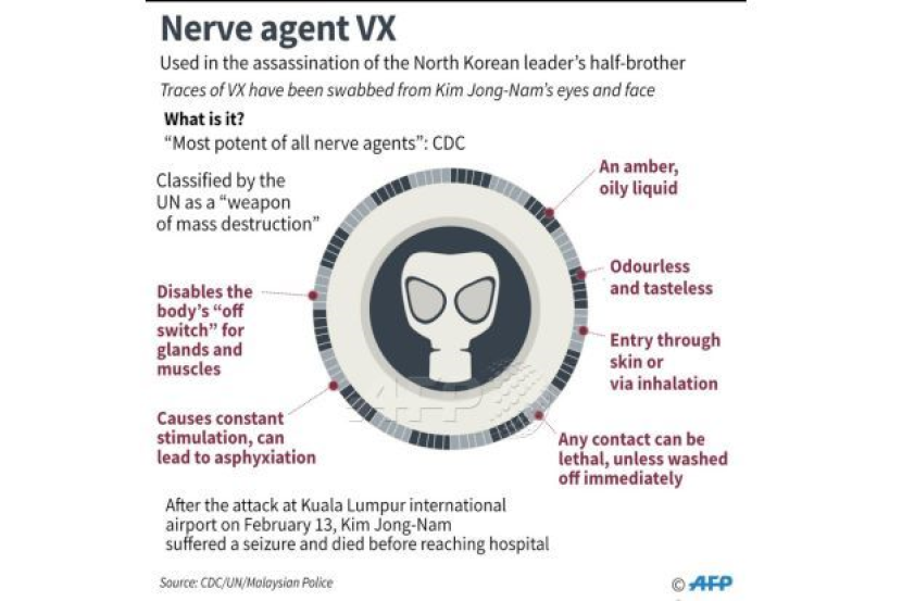 "Korea Utara dipercayai mempunyai simpanan besar VX dan mudah dihasilkan dengan kos yang rendah," kata penganalisis Lee Il-Woo di Rangkaian Pertahanan Swasta Korea kepada AFP.
