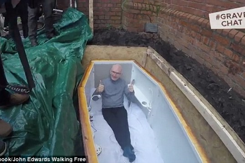 Edward menyediakan media sosial Facebook dengan slogan #GraveChat untuk menyebarkan matlamat kempennya. selain bersiaran secara langsung dalam kubur itu untuk tontonan masyarakat umum.