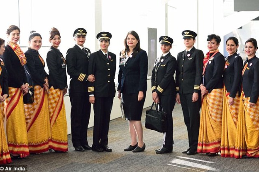 Menurut laporan MailOnline, pesawat Ari India dari Delhi ke San Francisco itu dikendalikan oleh wanita termasuk kapten pesawat dan staf daftar masuk.