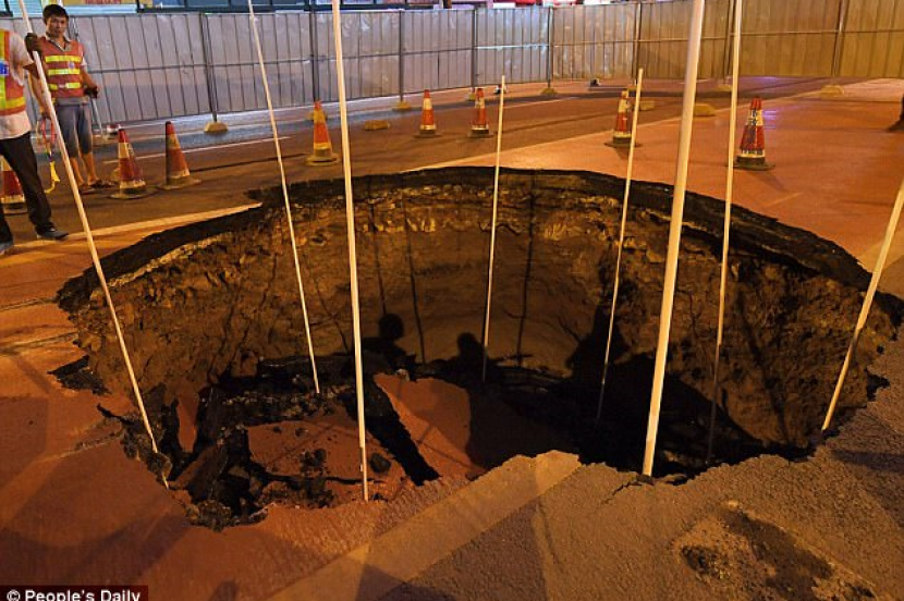 Lubang benam itu berukuran tiga meter lebar dan mempunyai kedalaman tiga meter.
