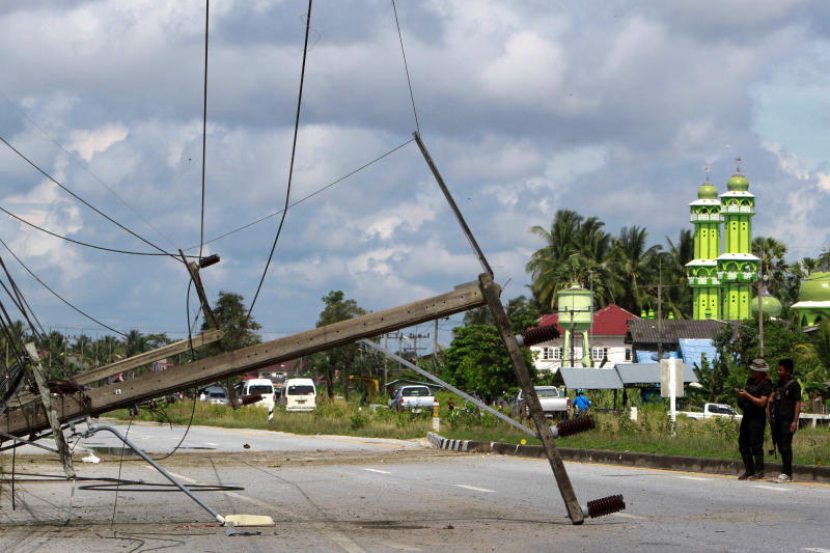 "Sebanyak 52 tiang elektrik di 19 daerah di Pattani, Yala, Narathiwat dan Songkla dimusnahkan dalam serangan khianat itu. Bekalan elektrik masih belum dapat dipulihkan sepenuhnya di beberapa kawasan yang terjejas," kata jurucakap tentera Bahagian Ke-4, Kolonel Pramote Prom-in.