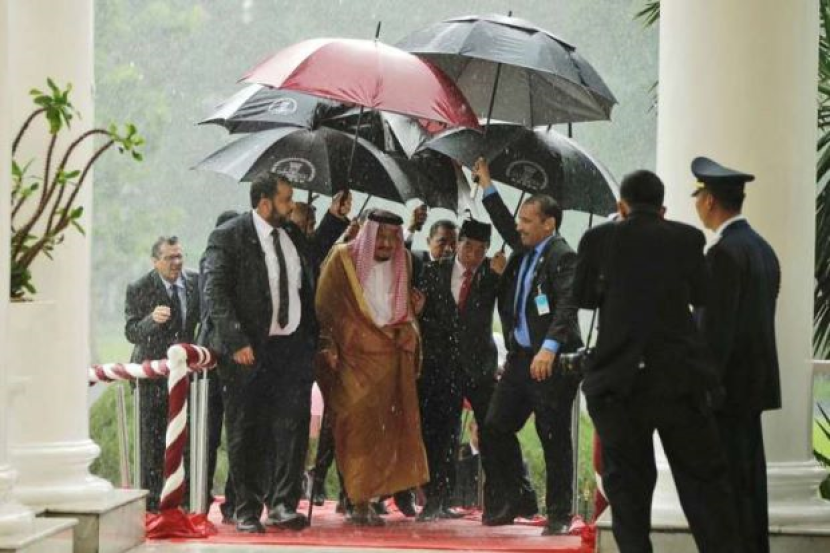 Jokowi berkata demikian merujuk kepada kunjungan Raja Salman ke Istana Bogor di Jawa Barat pada 1 Mac lalu, bagi menyambut rombongan Arab Saudi semasa hujan lebat.
