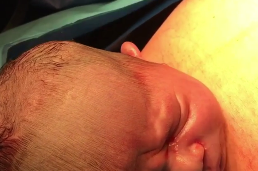 PROSEDUR pembedahan caesarean secara lembut dan perlahan yang dilakukan ke atas seorang wanita Venezuela menyaksikan kepala bayinya dengan sendiri terkeluar dari perut si ibu.