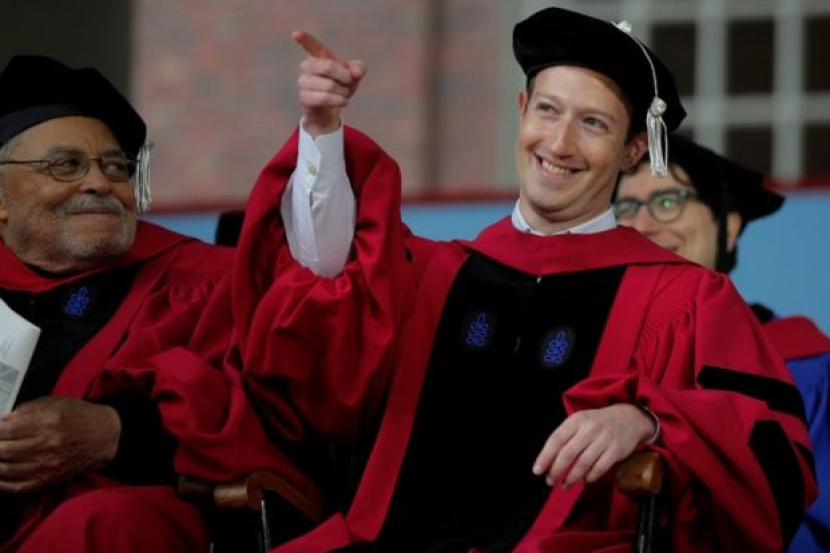 PENGASAS Facebook, Mark Zuckerberg kembali ke Universiti Harvard dalam keadaan hujan untuk memberi ucapan sempena tamat pengajiannya dan menerima ijazah kehormat.