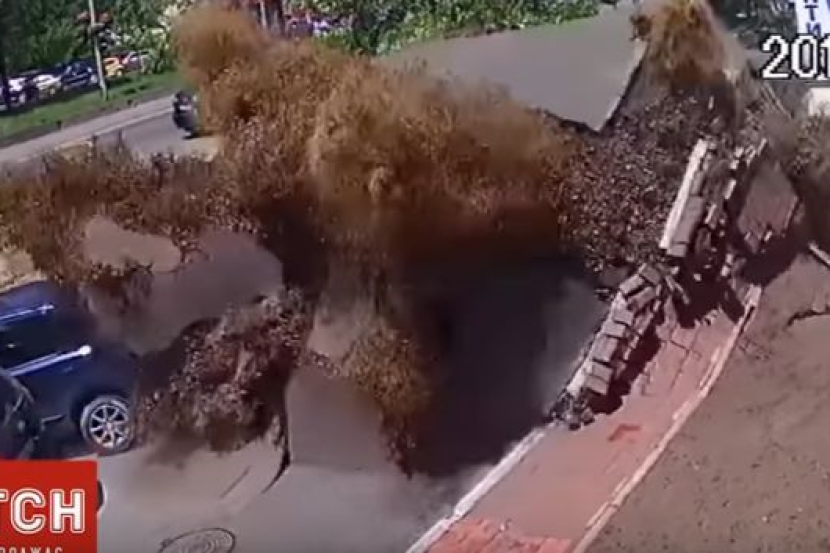 KYIV: Satu video kawalan keselamatan merakamkan insiden luar biasa apabila sebuah jalan 'meletup' dengan limpahan air berlumpur dari bawah tanah di Kiev, Ukraine.