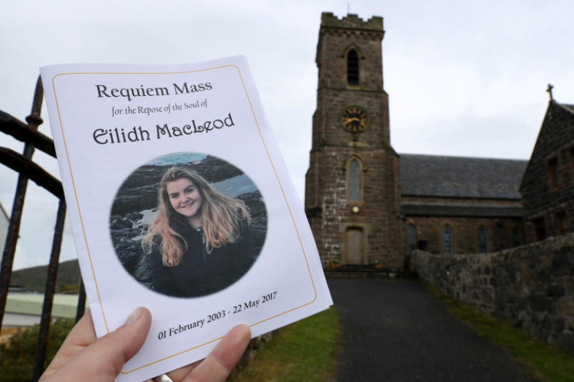 Risalah bagi memberi penghormatan buat mangsa serangan Manchester, Eilidh MacLeod sewaktu majlis pengebumiannya di sebuah gereja di Barra, Scotland pada Isnin. Foto Reuters