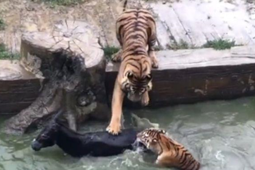 Video insiden itu yang dimuat naik ke Internet menunjukkan ketika penjaga zoo di Changzhou, wilayah Jiangsu menolak keldai hidup ke kandang harimau untuk dimakan tiga haiwan pemangsa itu.