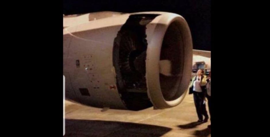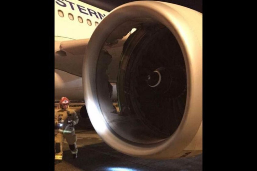 Beberapa foto yang disiarkan portal Mail Online menunjukkan, lubang besar terbentuk pada bingkai enjin pesawat jenis Airbus A330 yang berlepas pukul 8.30 malam Ahad.