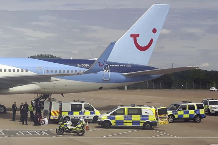 Penerbangan Thomson dari Glasgow ke Alicante terpaksa mendarat di Lapangan Terbang Brsitol berikutan kebimbangan terhadap kelakuan tiga lelaki terbabit.