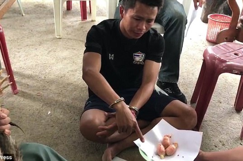 Dalam kejadian di Chiang Mai, Thailand, suspek dikenali sebagai Charnut Seuksongkram, 29, dicekup pihak polis selepas didakwa memaksa seekor daripada ayam tersebut menelan tiga tiub mengandungi dadah.